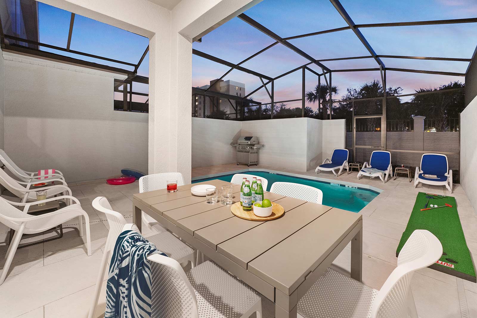 Pool & Patio: Pool days are an integral part of any Orlando vacay–and this villa features its very own! Start or end your day with a splash, without even leaving the front door. Whether you’re taking a dip in the refreshing water, sunbathing on a comfy lounger, or dining al fresco at the patio table, this outdoor oasis is a dream spot for R&R.