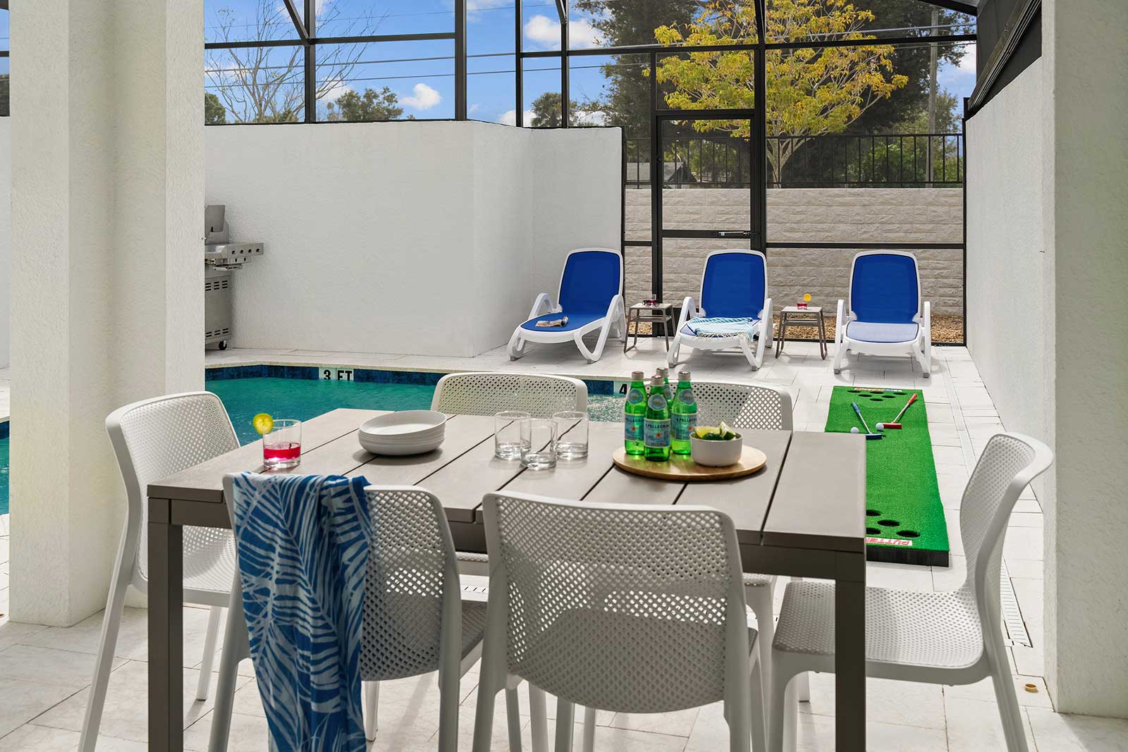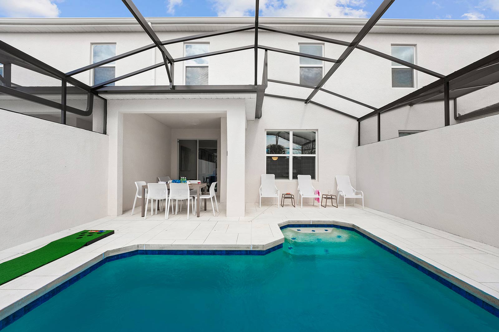 Pool & Patio: Pool days are an integral part of any Orlando vacay–and this villa features its very own! Start or end your day with a splash, without even leaving the front door. Whether you’re taking a dip in the refreshing water, sunbathing on a comfy lounger, or dining al fresco at the patio table, this outdoor oasis is a dream spot for R&R.