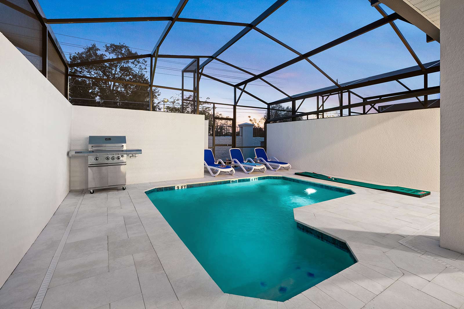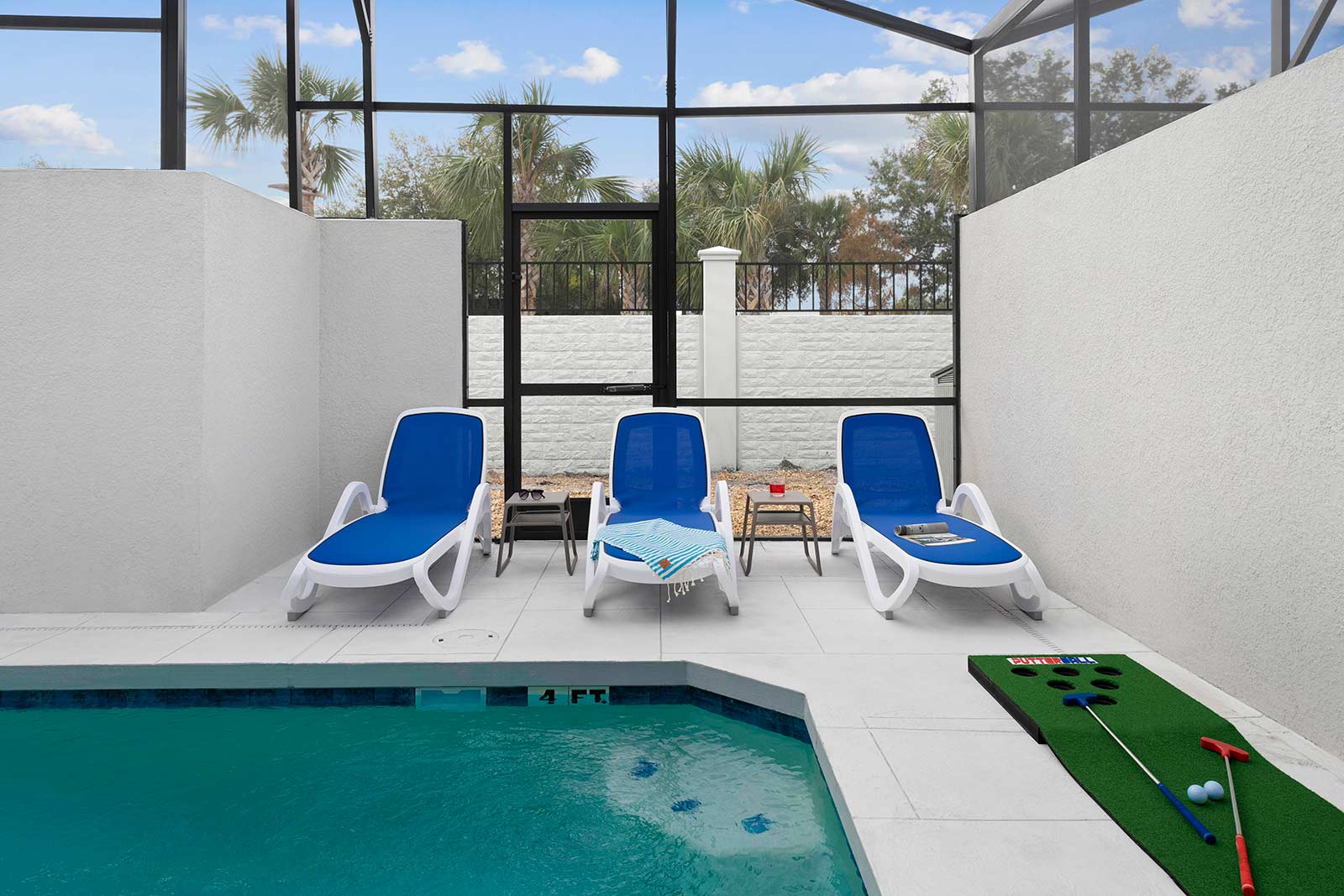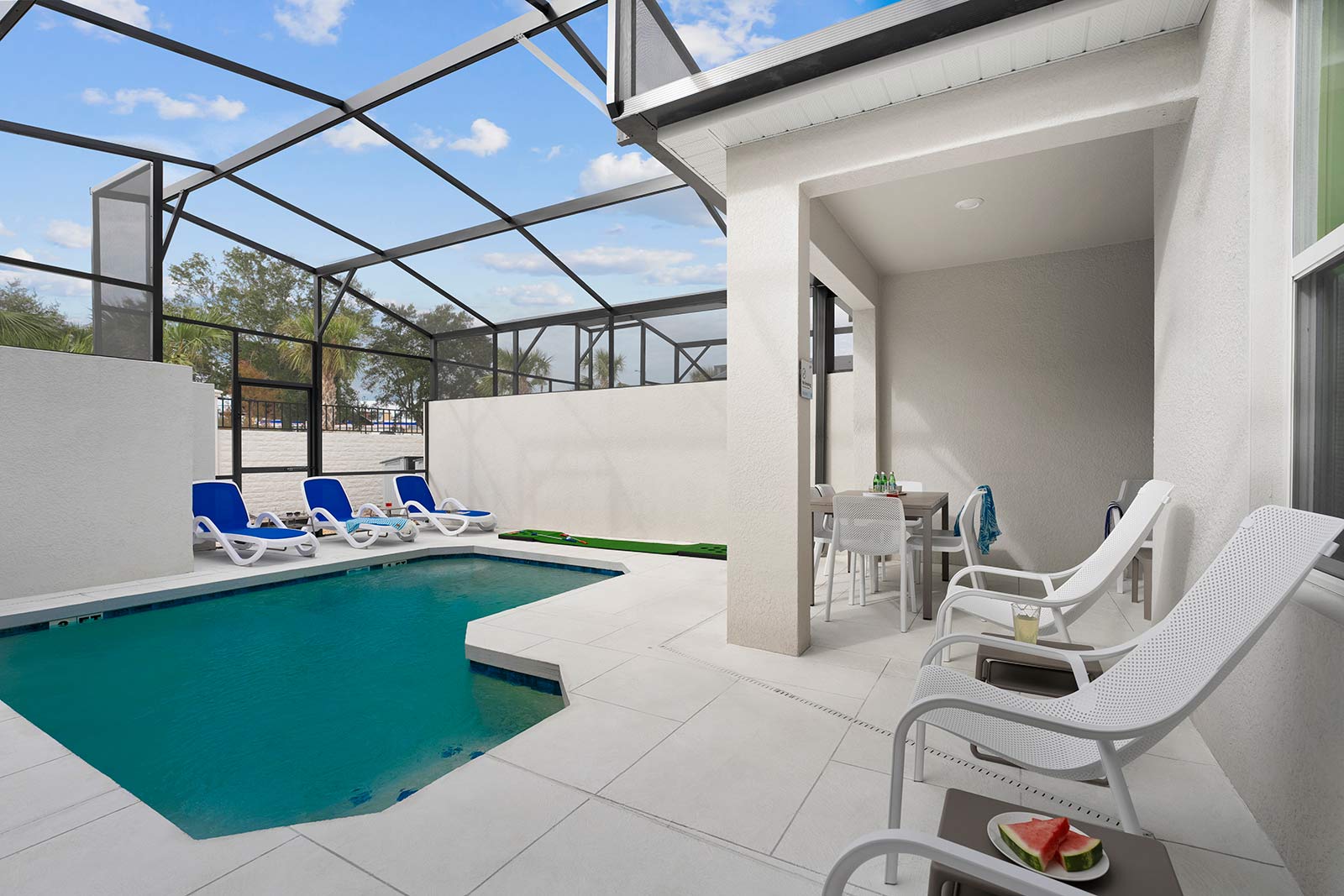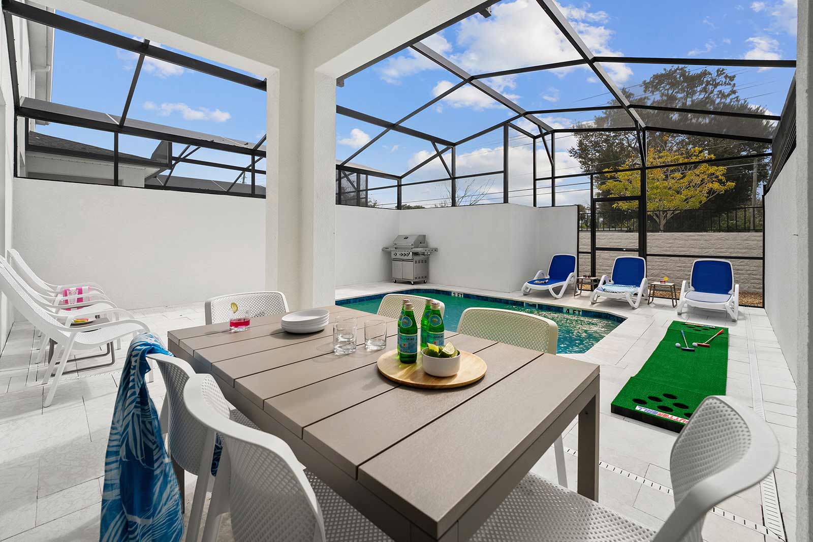 Pool & Patio: Pool days are an integral part of any Orlando vacay–and this villa features its very own! Start or end your day with a splash, without even leaving the front door. Whether you’re taking a dip in the refreshing water, sunbathing on a comfy lounger, or dining al fresco at the patio table, this outdoor oasis is a dream spot for R&R.