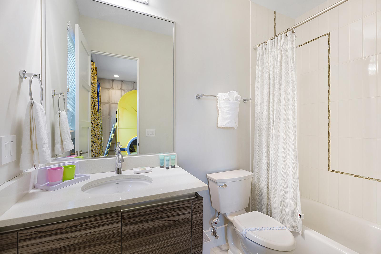 In this magical vacation villa, characters come to life in two, one-of-a-kind themed bedrooms. We’re talking a decked-out lab with an epic bunk bed whose lower level can only be accessed through a pair of goggles! And for your princesses, a fairytale-esque bedroom where their favorite princesses will keep them company all night—ensuring sweet dreams and smiles the moment their heads hit the pillows.