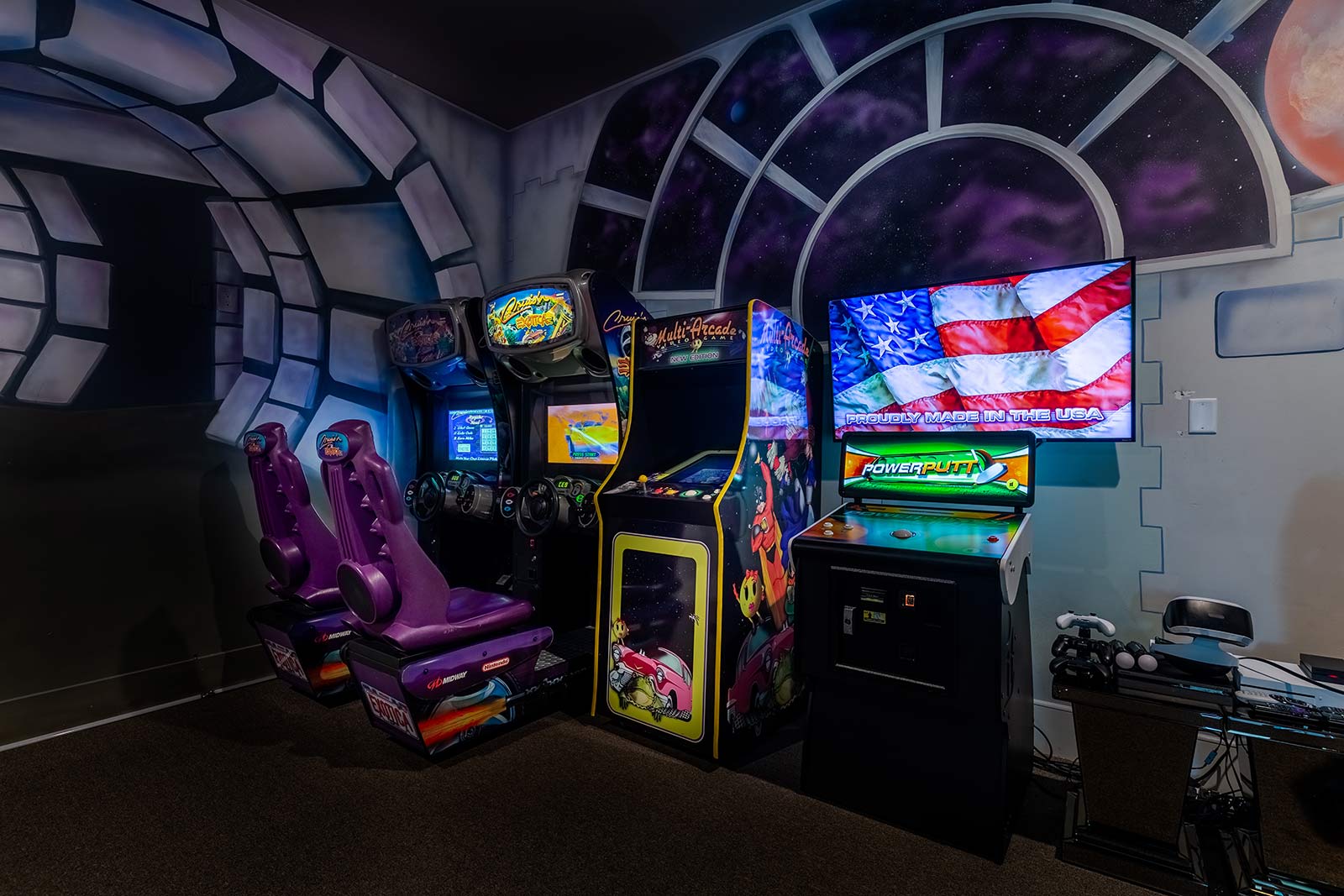 But in this place, there are lots of fun times to be had before bedtime—starting with the space themed arcade room! This spot is perfect for family game night, featuring everything from pool, air hockey, Xbox and PS4, to arcade classics like Cruis’n Exotica Dual Driver, 60-In-One Multicade, and Power Putt.