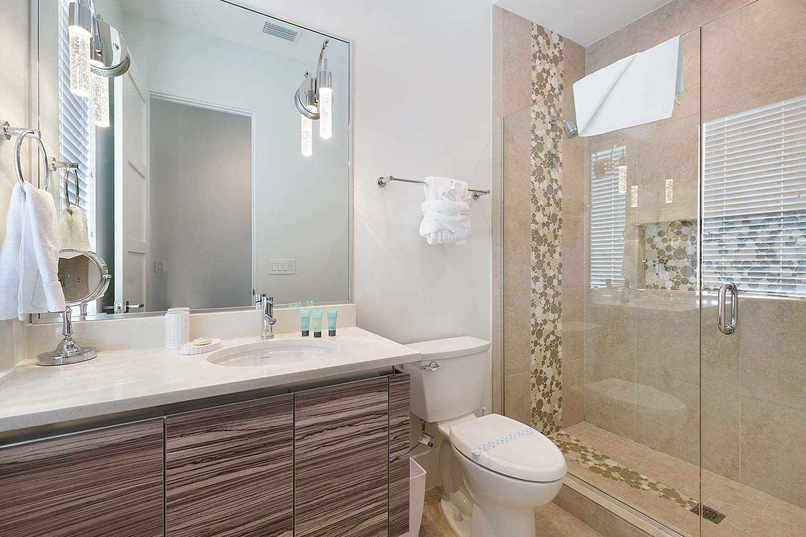 When bedtime beckons, tuck your kids into the themed sleeping quarters of their dreams, while you unwind in one of four extra-cozy King-, Queen-, and Full-sized bedrooms. In the Master, you’ll enjoy a spacious en suite bathroom (featuring a shower , tub and twin vanities), and access to a private balcony overlooking the pool deck and sweeping golf course and preserve views--- just a snapshot of all the beauty that Reunion Resort has to offer.