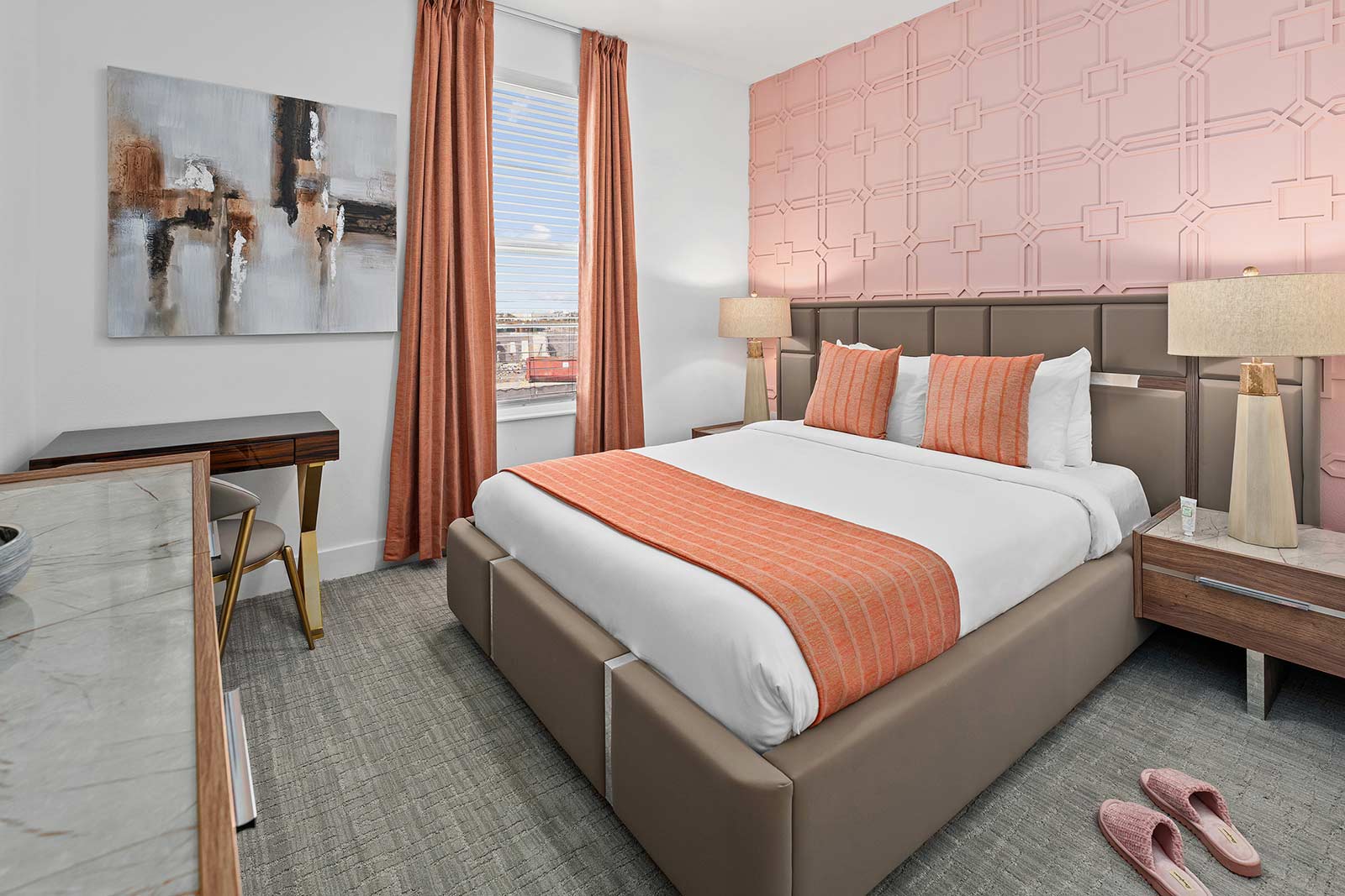 If you prefer to have a car to get around during your stay, we recommend renting from any of the major car rental companies at the airport. However, we do offer shuttle service to and from Disney and Universal, and we’re conveniently located near the city’s best shopping and dining—so you may cut costs and hassle by taking Ubers/ Lyfts instead of renting a car!